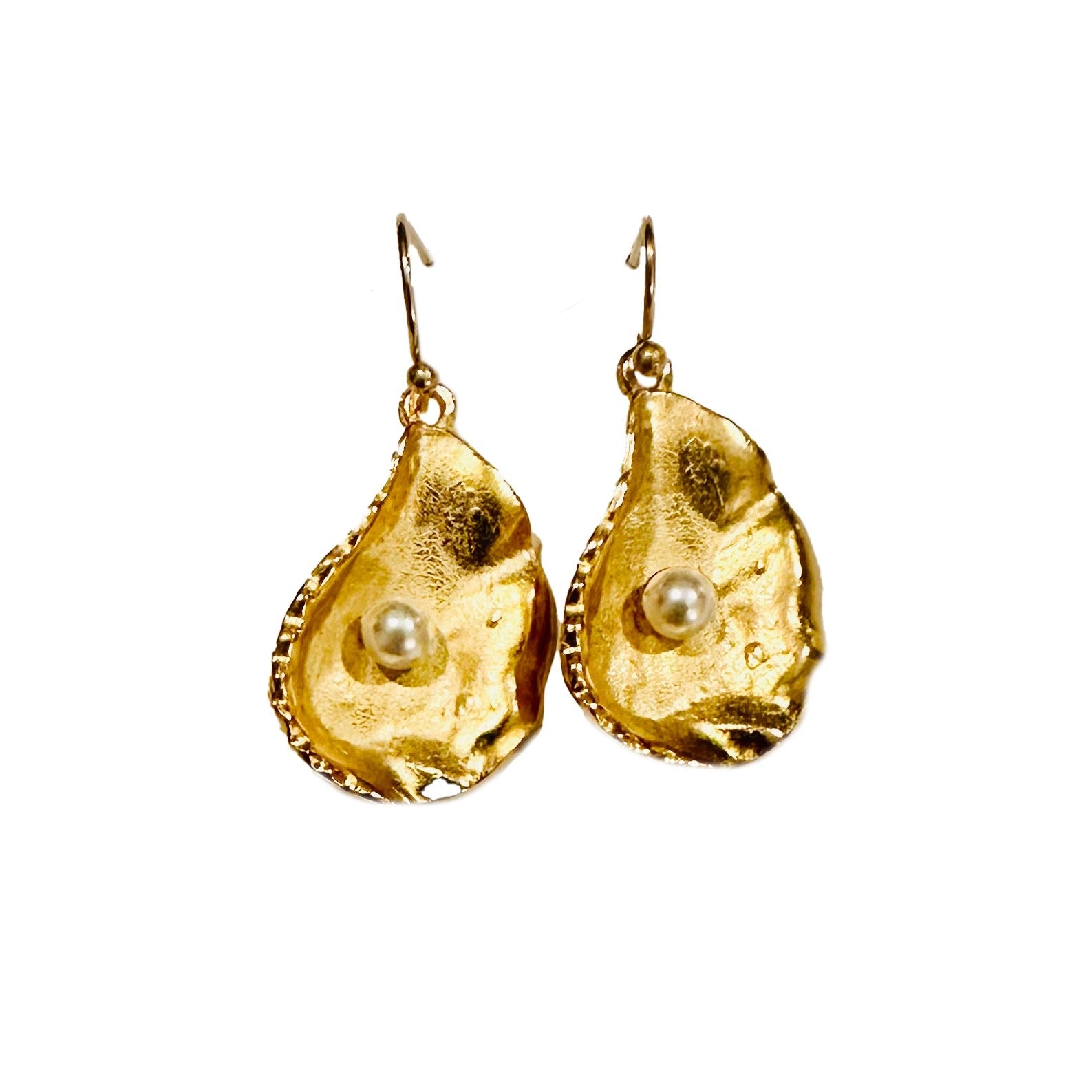 Gold Oyster + Freshwater Pearl Earrings